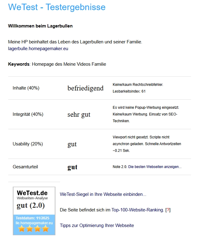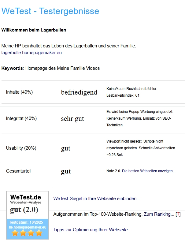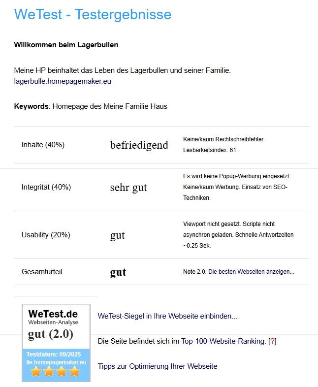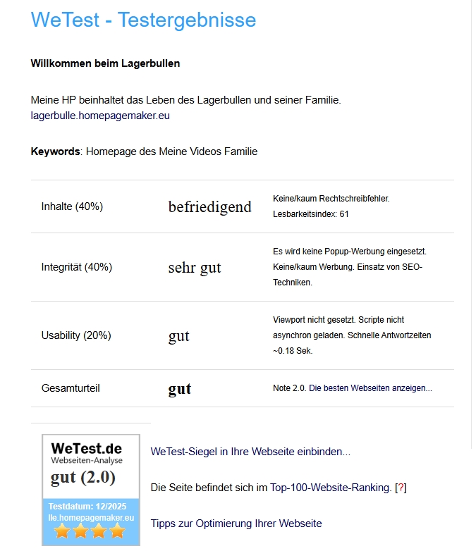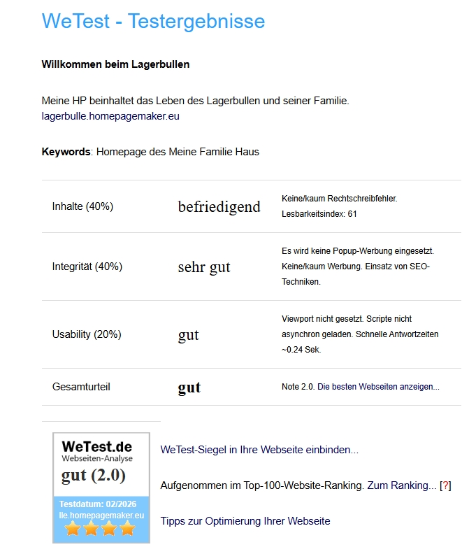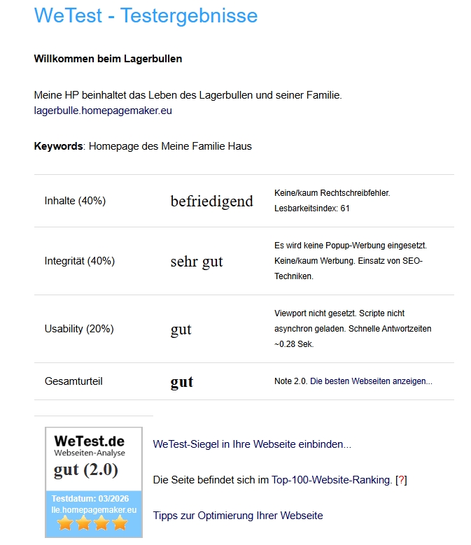 Bewertung meiner Homepage